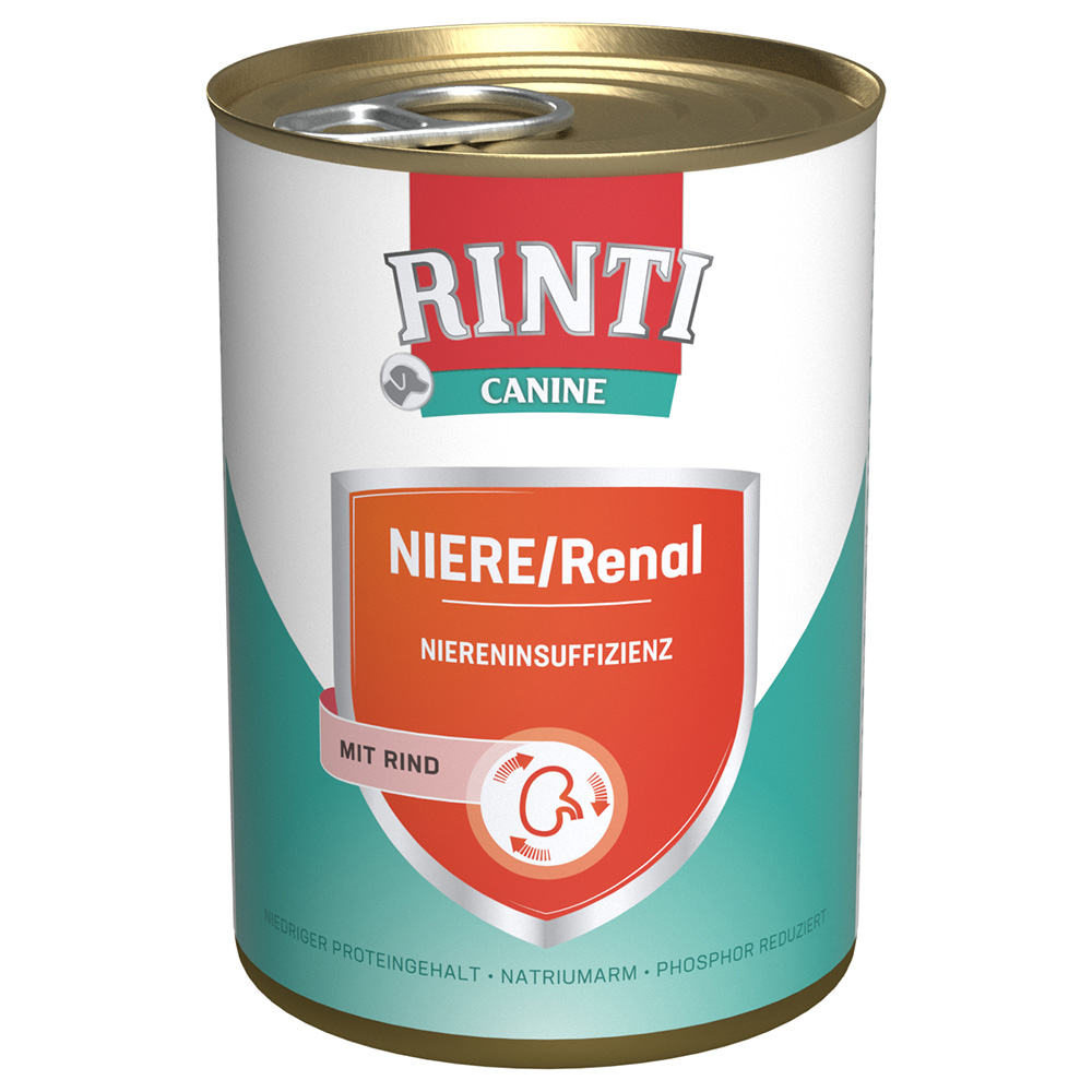 Les chiens qui souffrent d’insuffisance rénale chronique ou aiguë ont besoin d’une alimentation adaptée. Les boîtes RINTI Canine Insuffisance rénale au bœuf constituent un aliment diététique qui soutient la fonction rénale de votre chien. Cet aliment diététique contient une teneur adaptée en protéines de qualité. Les boîtes RINTI Canine Insuffisance rénale au bœuf possèdent en outre une teneur réduite en phosphore pour contribuer à soulager les reins. Cet aliment diététique pour chien est riche en fibres essentielles et contribue ainsi à une bonne digestion. Caractéristiques des boîtes RINTI Canine Insuffisance rénale bœuf 400 g pour chien : aliment diététique complet pour soutenir la fonction rénale chez les chiens adultes en cas…