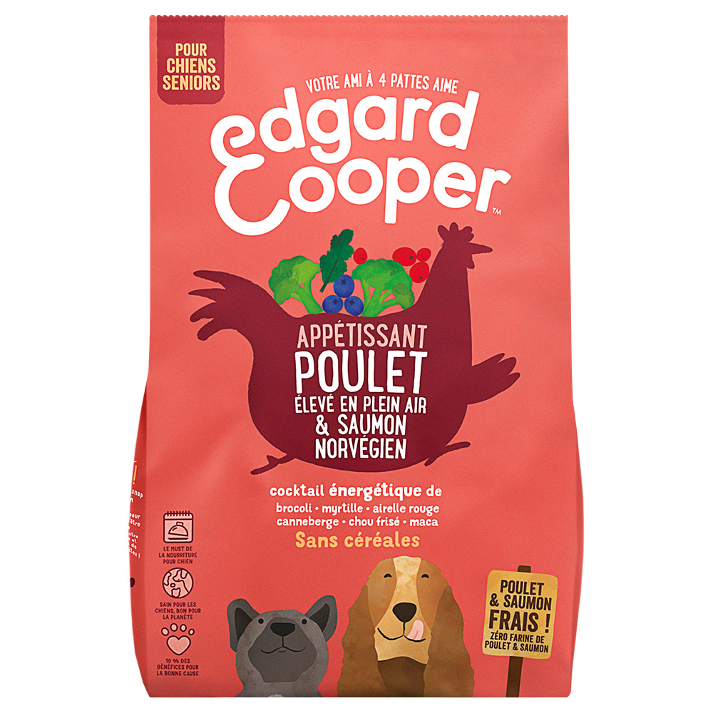 Il arrive un moment où votre chien entre à son tour dans la catégorie des seniors… et ses besoins nutritionnels évoluent aussi avec l’âge. Les croquettes Edgard Cooper Senior poulet et saumon sans céréales répondent parfaitement aux besoins des chiens âgés. Leur recette est pauvre en calories et très bien tolérée. Naturellement savoureuses, délicieusement simples. Ces croquettes contiennent du poulet et du saumon frais ainsi qu’un assortiment varié d’ingrédients d’origine végétale sélectionnés, dont de la patate douce, des brocolis, des myrtilles ou encore des herbes fraîches. Pour aider la peau et le pelage à garder leur éclat, ces croquettes contiennent également des acides gras oméga-3 et oméga-6. Ils peuvent en effet avoir un effet…