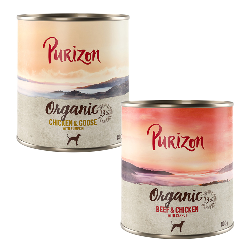 24x800g Organic Bio : lot mixte (12 x poulet & oie, 12 x bœuf & poulet) Purizon Boîtes pour chien : -10 € !