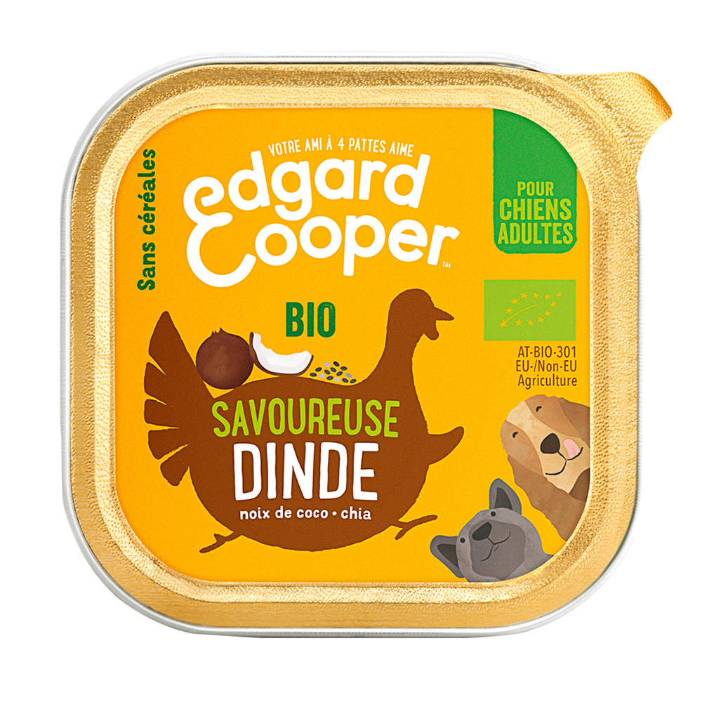 De nombreux chiens sont sensibles aux ingrédients traditionnels, c’est pourquoi de plus en plus de propriétaires optent pour des produits bio pour leur animal. L’aliment humide Edgard Cooper Adult Menu bio sans céréales fait figure de précurseur dans ce domaine puisqu’il il contient quatre sortes de viande fraîche biologique : de la dinde bio, du bœuf bio, du porc bio et du poulet bio. Naturellement savoureuse, délicieusement simple. Pour compléter ce concentré de protéines, cette recette innovante contient également de nombreux ingrédients d’origine végétale tels que la noix de coco bio, les graines de chia bio, l’églantier bio et la camomille bio, qui constituent d’excellentes sources de nutriments et d’antioxydants utiles. Ce repas…