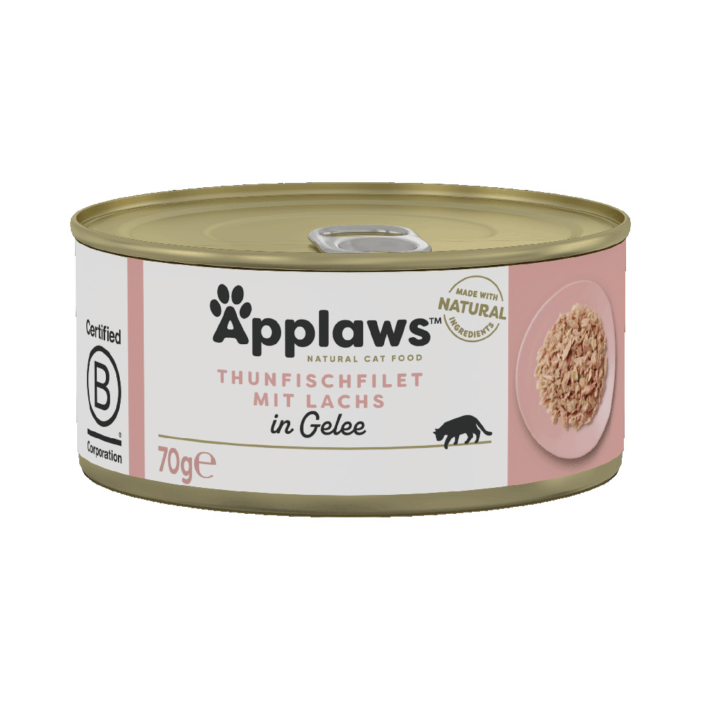 6x70g Applaws en gelée thon & saumon – Pâtée pour chat