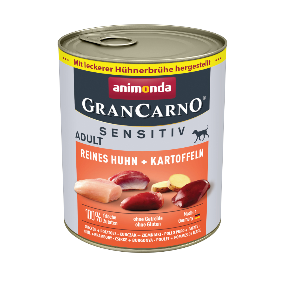 Même s’il a un estomac sensible, votre chien a aussi le droit de se faire plaisir ! Les boîtes animonda GranCarno Adult Sensitive 6 x 800 g constituent un aliment équilibré et facile à digérer. Chaque variété est formulée à partir d’une seule sorte de viande. Ces recettes monoprotéiques contiennent des pommes de terre ou du riz sans gluten comme source de glucides digestes. Les boîtes Animonda GranCarno Adult Sensitive 6 x 800 g sont garanties sans soja ni sucre ajouté et sont particulièrement appréciées de la plupart des chiens. Caractéristiques des boîtes animonda GranCarno Adult Sensitive 6 x 800 g pour chien : aliment humide et complet pour les chiens adultes (1 – 6 ans) parfaitement adaptées pour les chiens souffrant de sensibilités…